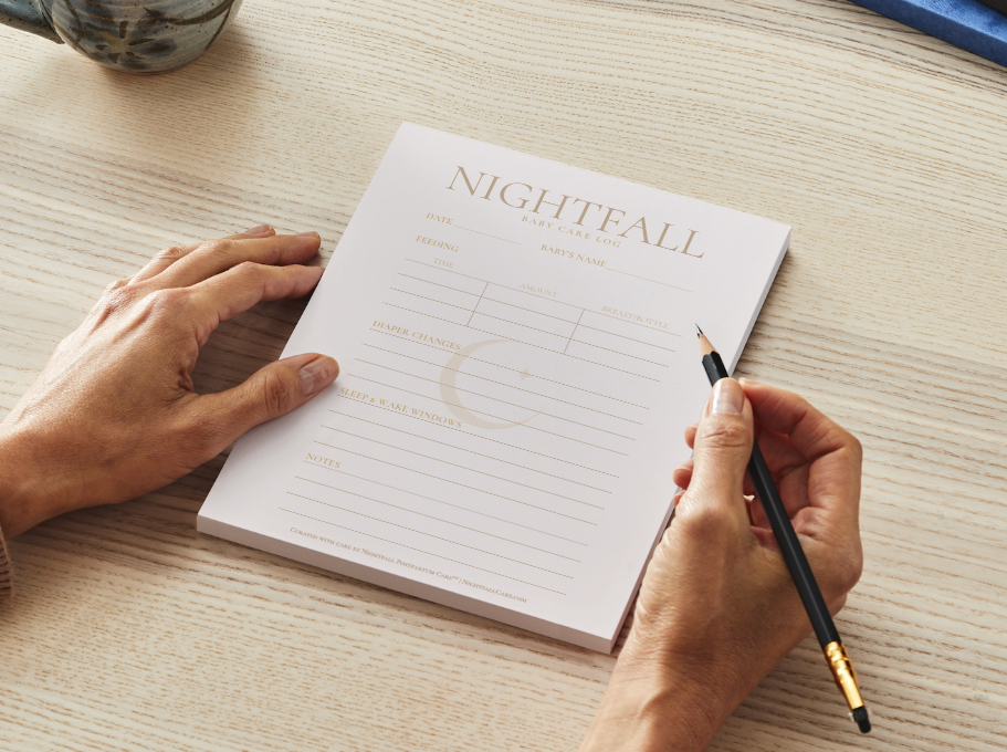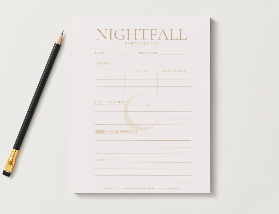 A beautifully designed feeding log to help new parents track their baby's daily routines with ease & elegance. Curated by Nightfall Postpartum Care™ for calm, organized nights